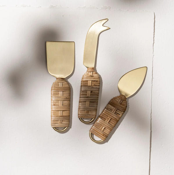 Cheese Set - Brass + Rattan