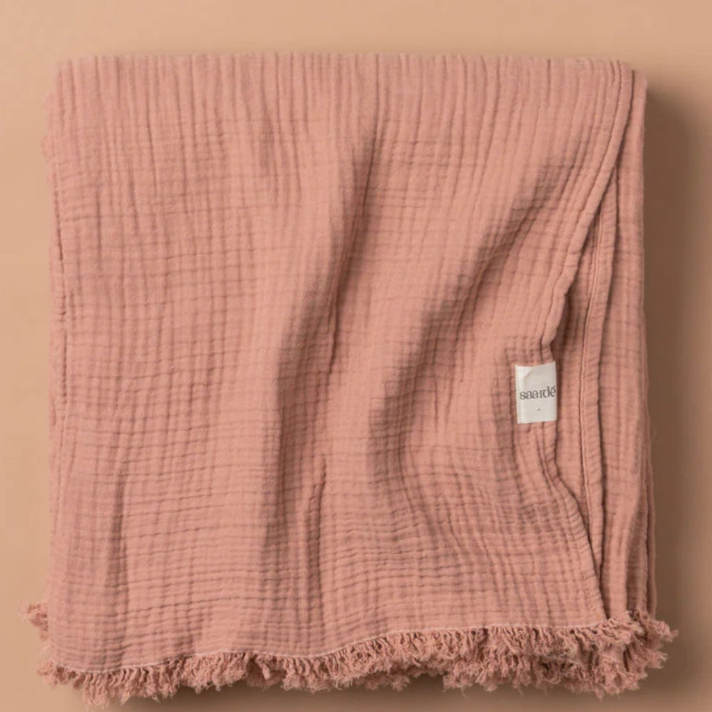 These Saardé signature pieces are made from four finely woven layers of Turkish cotton to create these beautifully crinkled and super-soft pieces. Perfect for layering - these work well over a duvet in Winter, and alone in Summer. This Extra Large Throw/ Bedcover works on a King Size Bed.