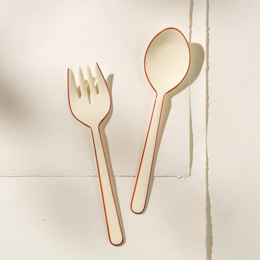 Salad Servers - Cream Enamel