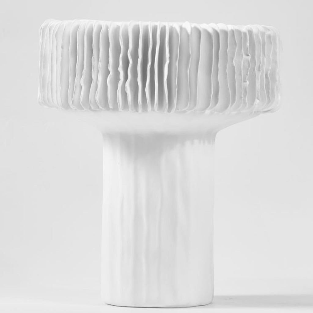 The vase has a truly sculptural presence. Adorned with its delicate fluted fins, each is hand made and attached to the bowl. This vase is more than just a functional vessel; it is a true work of contemporary art that captures the eye and sparks conversation.