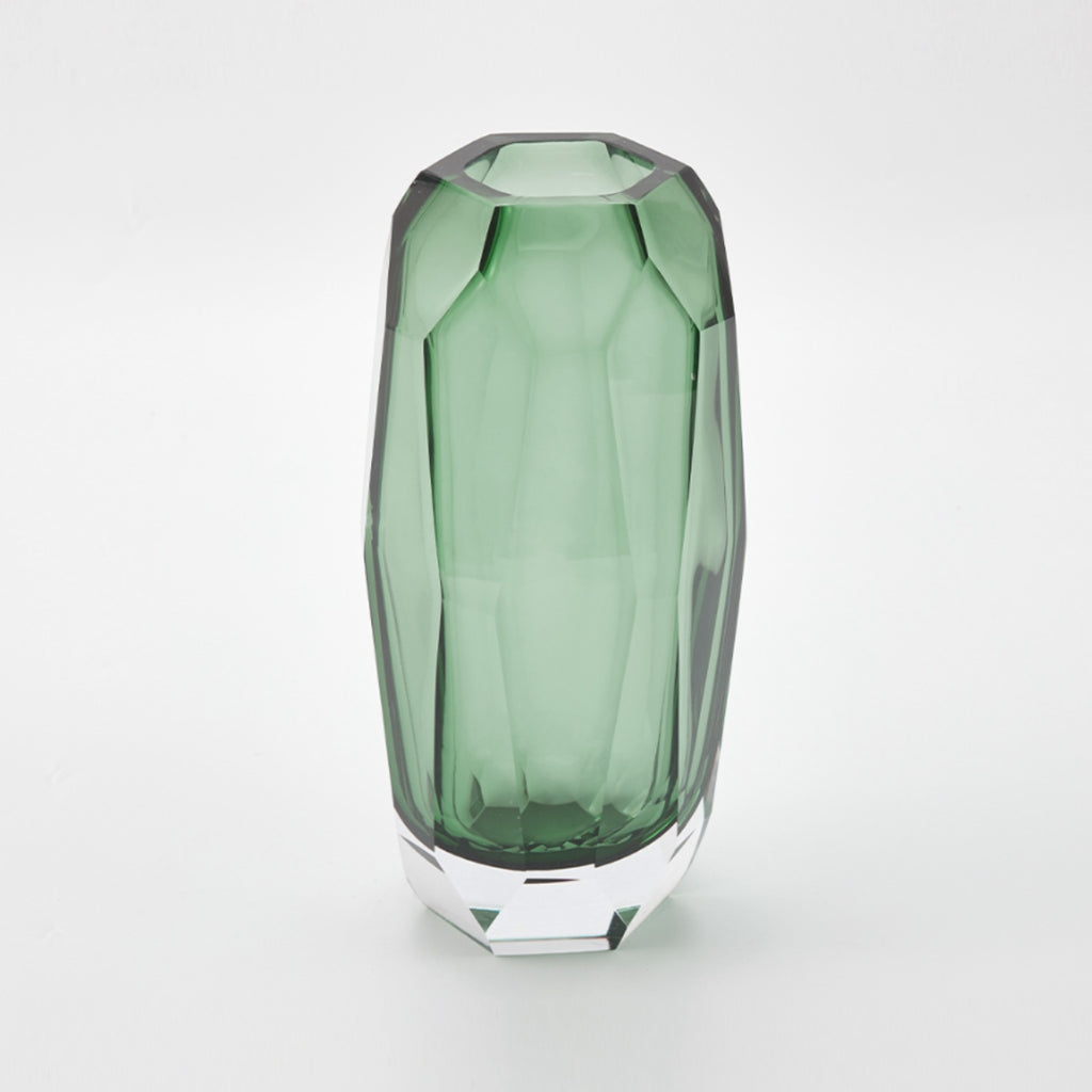 The multi-faceted dimensional characteristics of this hand blown, hand cut and polished sculptural vase is exquisite. Leave empty as a true statement piece to fill with your favourite blooms or foliage.
