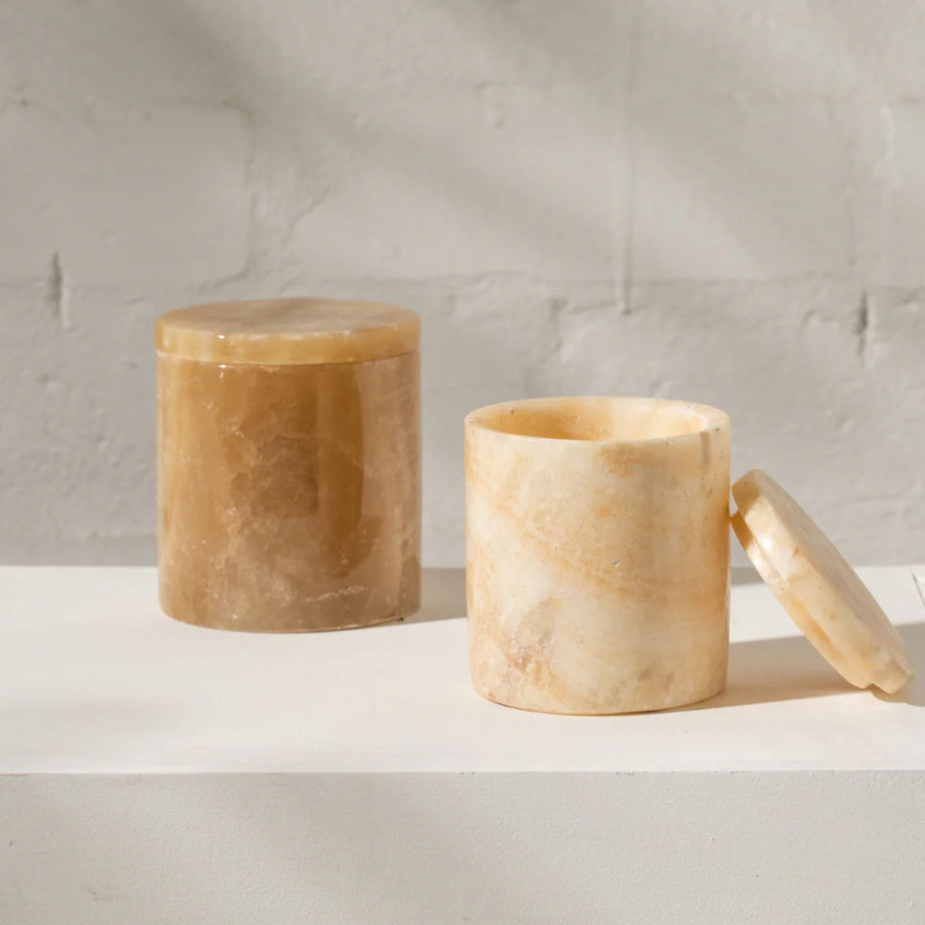 These beautiful canisters are made using natural onyx. Each item is unique with different colouring and natural patterning. Onyx may contain small cracks, holes and pits that are characteristic of this authentic product.
